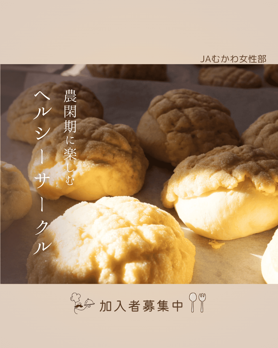 12~2月の農閑期、JAむかわ女性部「ヘルシーサークル」ではパン作りなどの活動をしています。