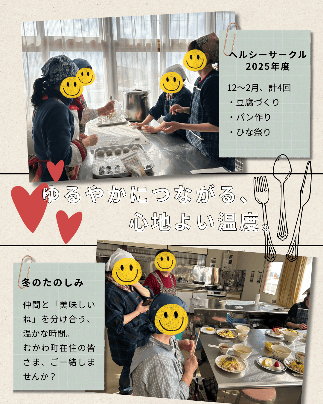 2025年度は、豆腐作りやパン作り、ひな祭りメニューなど計4回、会話も料理も楽しみました。